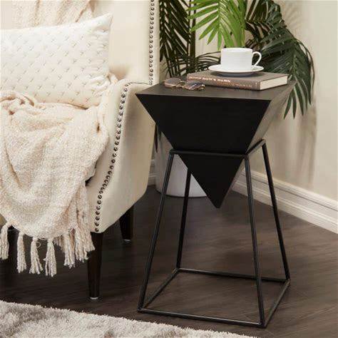 Decmode 14" X 24" Black Wood Inverted Pyramid Geometric Accent Table With Black Metal Stand, 1-Piece