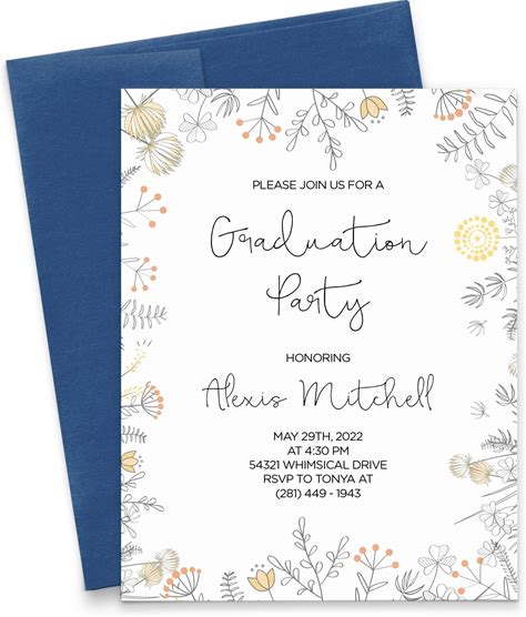 Modern Floral Graduation Party Invites Personalized Commencement Invitations For Graduate, Custom Grad Party Invite With Flowers, Your Choice Of