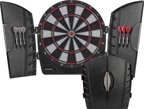 Fat Cat Mercury Electronic Dartboard, Built In Cabinet Doors With Integrated Scoreboard, Dart Storage For 6 Darts, Dual Display In Two Colors, Compact