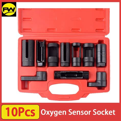 10Pcs Oxygen Sensor Socket Set, Universal O2 Sensor Wrench Remover, 3/8" 1/2" Drive X 7/8" 22mm 27mm