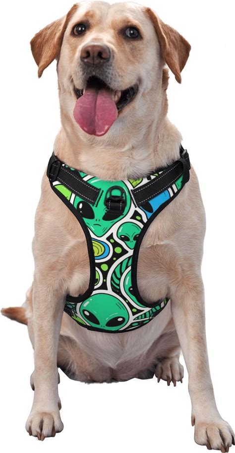 Pet Harness And Leash Aliens Faces Alien 90S Style Art Adjustable Breathable Pet Harness Animal Outdoor Walking Training Traction Rope Vest For Large