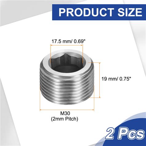 Stainless Steel Pipe Plug Male Hex Internal Socket - Silver - 2Pcs, M30 X 2