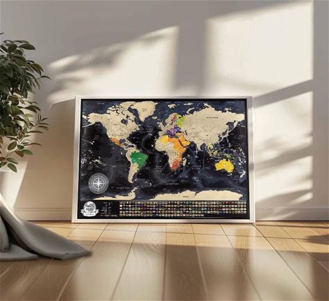 Scratch Off Map Of The World With Flags - 24 X 17 Easy To Frame